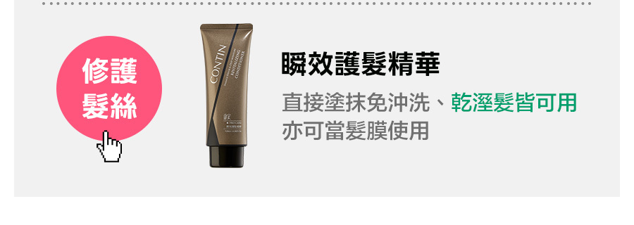 适用对象:头皮容易出油、头发易坍塌、染烫后受损发质调理。